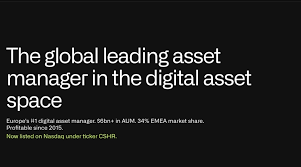CoinShares International Limited is a financial services provider and asset manager based in Jersey that specializes in digital assets. The company, headquartered in St. Helier, was founded in 2013 / 2014 and is considered one of the first companies in the crypto investment sector. CoinShares offers institutional and private investors access to crypto investments, for example through exchange-traded crypto products, funds, and other financial products. The group has been listed on the Stockholm Stock Exchange since 2021, and in September 2025, a secondary listing on the New York Stock Exchange was announced. Wikipedia